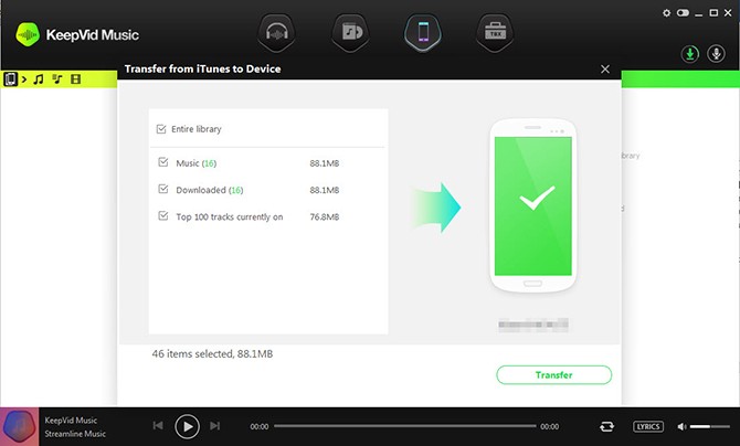 Chương trình cho phép chép nhạc đã tải về sang các thiết bị di động (iOS, Android). Các cách chuyển nhạc lên hai hệ điều hành này là như nhau. Thí dụ với các thiết bị Android, bạn kết nối chúng với máy tính, sau đó chọn thẻ iTunes Library và chọn biểu tượng Download để hiển thị danh sách các bài hát tải về. Tiếp tục lựa chọn bài hát, bấm chuột phải vào chúng và chọn Add To, chọn thiết bị Android mà bạn muốn chuyển các bài hát. Một cách khác là lựa chọn các bài hát, bấm vào biểu tượng Export và lựa chọn thiết bị Android mà bạn muốn chuyển dữ liệu nhạc số.