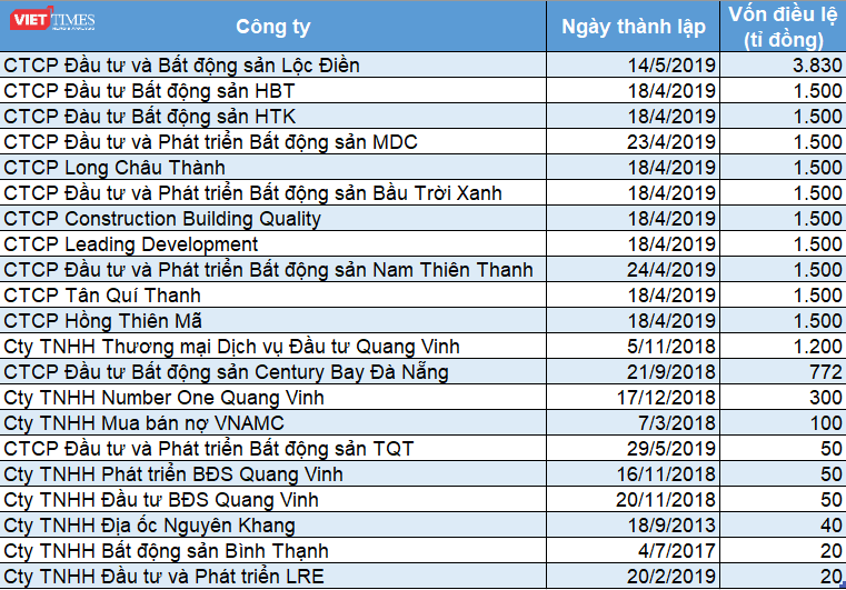 Đáng chú ý, trong khoảng thời gian từ 18-24/4/2019, bà Trần Uyên Phương cùng các thành viên trong gia đình đã thành lập tới 10 công ty bất động sản, với cùng quy mô vốn điều lệ 1.500 tỉ đồng.
