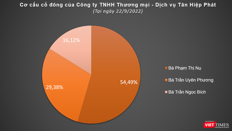 Theo tìm hiểu của VietTimes, ông Thanh không trực tiếp nắm giữ cổ phần ở nhiều thành viên Tân Hiệp Phát, thay vào đó là phu nhân Phạm Thị Nụ (SN 1957), cùng 2 người con gái là bà Trần Uyên Phương (SN 1981) và bà Trần Ngọc Bích (SN 1984).