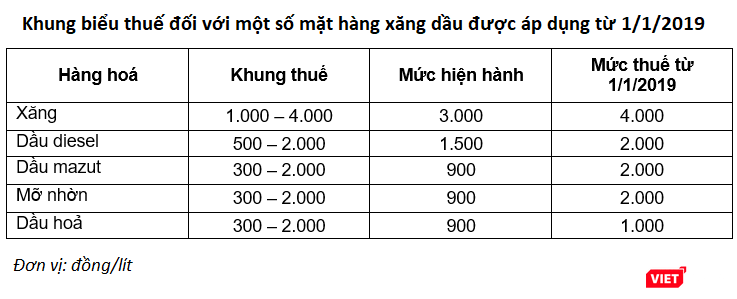 Biểu thuế mới sẽ có hiệu lực kể từ ngày 1/1/2019. Mốc thời gian này được đưa ra nhằm đảm bảo không có sự tác động tăng giá các mặt hàng xăng dầu tới chỉ số giá tiêu dùng (CPI) và ảnh hưởng tới mục tiêu kiềm chế lạm phát dưới 4% năm 2018 đã được Quốc hội quyết định.