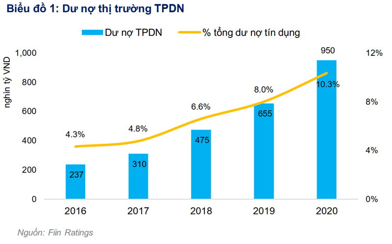 Trong báo cáo Triển vọng Thị trường Trái phiếu Doanh nghiệp (TPDN) Việt Nam 2021 công bố mới đây, nhóm nghiên cứu của Fiin Group đánh giá kênh trái phiếu đã đóng vai trò quan trọng trong việc khai thông nguồn vốn cho sự phát triển của doanh nghiệp Việt Nam.