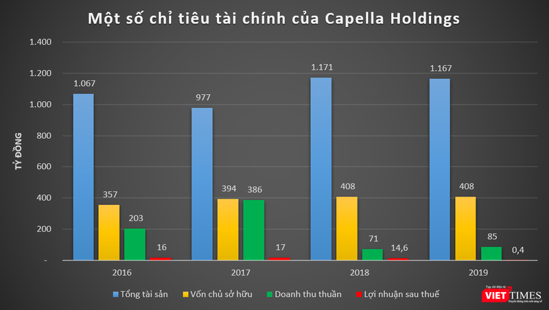 Mức lợi nhuận kể trên có thể nói là không đáng kể nếu so với quy mô tài sản, nguồn vốn của Capella Holdings. Tính đến cuối năm 2019, tổng tài sản của Capella Holdings đạt 1.166 tỷ đồng, giảm khoảng 4 tỷ đồng so với năm trước; vốn chủ sở hữu tăng nhẹ lên 408 tỷ đồng.