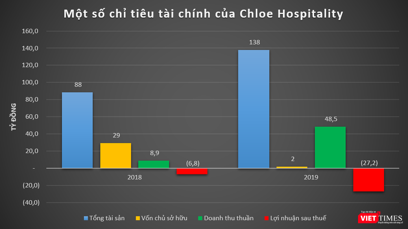 Tính đến cuối năm 2019, tổng tài sản của Chloe Hospitality đạt 138 tỷ đồng, tăng 56% so với thời điểm đầu năm; vốn chủ sở hữu chỉ là 2 tỷ đồng, giảm 27 tỷ đồng./.