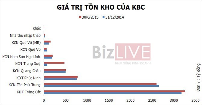 Theo đó, tính đến ngày 30/6/2015, giá trị tồn kho dự án Khu đô thị và dịch vụ Tràng Cát đã tăng lên hơn 70 tỷ đồng. Tồn kho tại dự án Khu công nghiệp Tràng Duệ tăng lên gần 400 tỷ đồng.