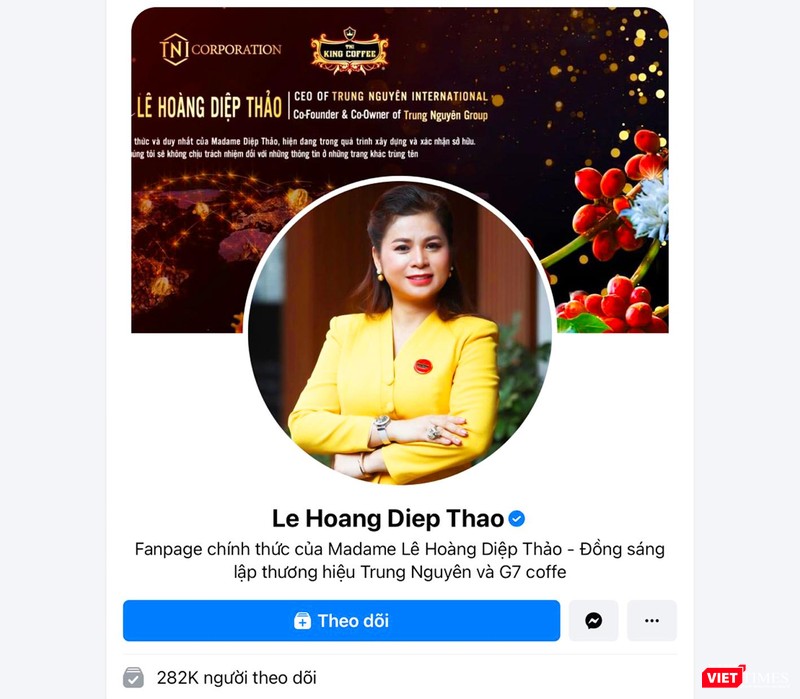 Bà Lê Hoàng Diệp Thảo không "tâm phục, khẩu phục" Quyết định Giám đốc thẩm này, nên hiện tại, trên fanpage cá nhân có tới 282 nghìn người theo dõi, bà Thảo vẫn để nguyên dòng chữ khẳng định mình là người đồng sáng lập thương hiệu Trung Nguyên và G7 Coffee.