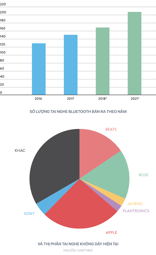 Giắc cắm tai nghe 3,5 mm chưa bị khai tử, nhưng một số nhà sản xuất đã vô tình đẩy người tiêu dùng về phía Bluetooth cũng như hệ sinh thái sản phẩm rộng lớn hơn của nó. Bất chấp việc vẫn còn tồn tại các vấn đề về chất lượng âm thanh và khả năng kết nối liên tục, sự tiện lợi của tai nghe không dây đã khiến thị trường chứng kiến một sự tăng trưởng lớn về nhu cầu.