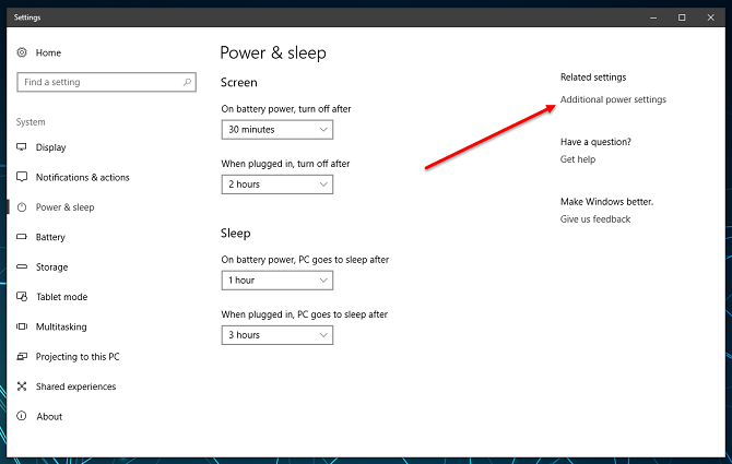 Trước hết, bấm chuột phải vào nút Start (hoặc nhấn tổ hợp phím Windows + X), sau đó vào mục Power Options. Ứng dụng Settings mở ra, nhấp vào tùy chọn Additional power settings ở cột bên phải.
