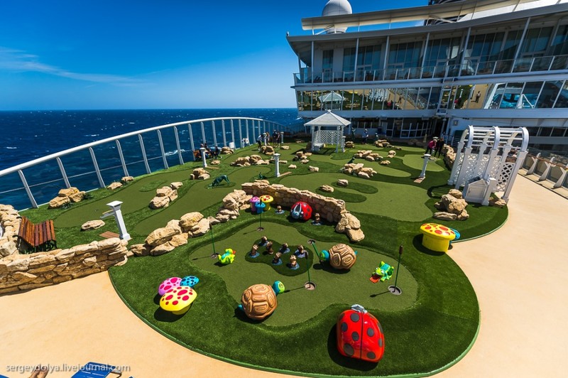 Có rất nhiều bể bơi trên tàu đủ các loại: bể người lớn, trẻ em, bể tạo sóng, bể vòi phun, bể sục ...