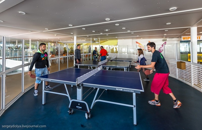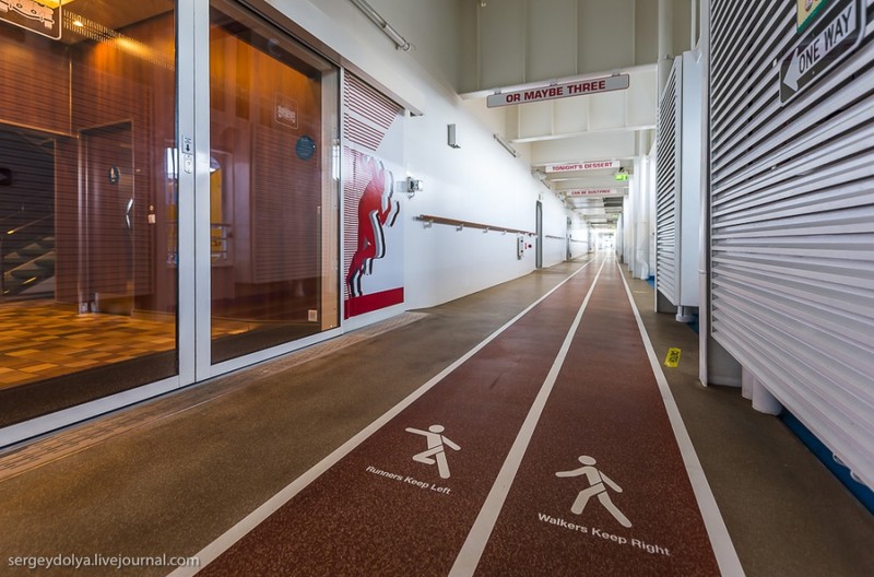Một đường chạy được thiết kế ở tầng 5 dành cho thể dục, nhưng cũng là đường chạy cứu hộ ra các xuồng cứu sinh, đường có độ dài 700 m