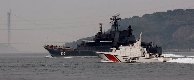 Chẳng hạn, tàu tuần tra của Thổ Nhĩ Kỳ từ tất cả các phía vây chặt con tàu đổ bộ "Minsk" của Hạm đội Baltic, kèm sát tàu Nga qua eo biển Bosporus. Trong lúc đó, một chiếc trực thăng lượn vòng trên trời xung quanh tàu Nga.