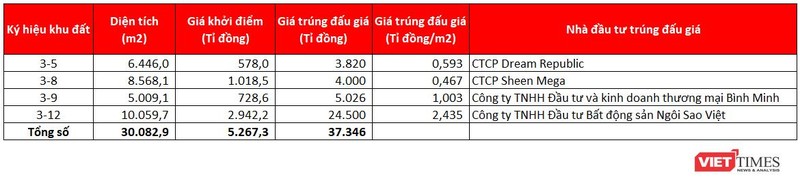 Điều đáng nói, khu đất mà Bình Minh trúng đấu giá có diện tích chỉ 5.009 m2 - nhỏ nhất trong số 4 ô đất được đem ra đấu giá và chỉ bằng một nửa so với ô đất ký hiệu 3-12. Tính theo đơn giá đất, nhà đầu tư này đã sẵn sàng chi ra tới 1 tỉ đồng/m2, cao gấp đôi mức giá mà Dream Republic hay Sheen Mega đã bỏ ra cho các ô đất 3-5 và 3-8, chỉ thua mức giá kỷ lục 2,4 tỉ đồng/m2 của nhóm Tân Hoàng Minh ở ô 3-12.
