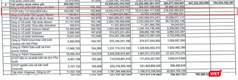 Riêng trong quý 2/2021, TCBS thu lãi 383 tỉ đồng từ việc bán trái phiếu chưa niêm yết. Trong đó, TCBS chủ yếu bán trái phiếu của CTCP Đầu tư Golden Hill (Golden Hill) với tổng giá trị bán đạt 10.532 tỉ đồng, thu lãi 219,5 tỉ đồng.