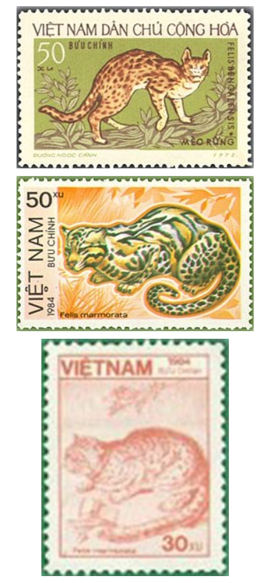 Mèo rừng có 3 mẫu trong 3 bộ: Bộ mã số 274 phát hành năm 1973, bộ mã số 434 và 458 phát hành năm 1984 đều khá đẹp, sinh động về tư thế và màu sắc.