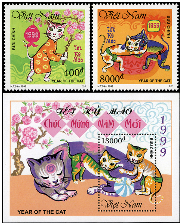 Đặc biệt, hình ảnh các chú mèo cũng 3 lần được Bưu chính Việt Nam đưa lên tem tết vào các năm 1999 (Tết Kỷ Mão), 2011 (Tết Tân Mão) và 2023 (Tết Quý Mão).