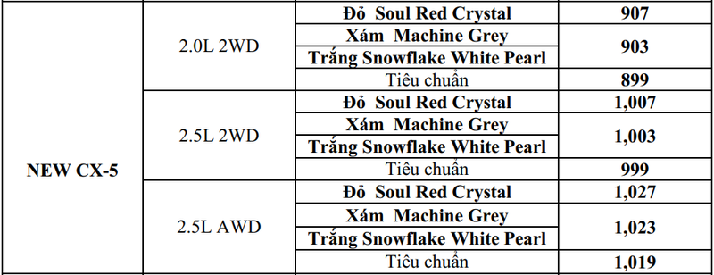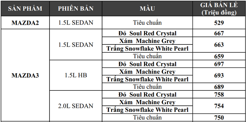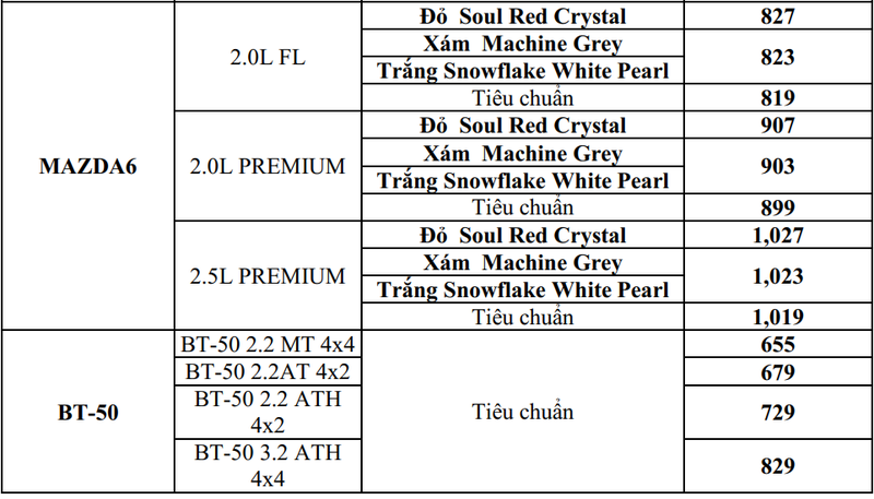 Bảng giá xe Mazda màu sơn cao cấp mới trong tháng 11/2018