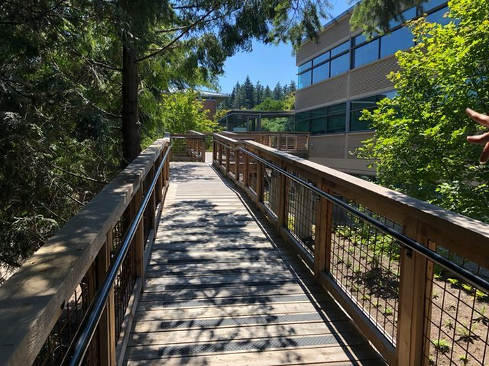 Đây là quang cảnh khi bước ra ngoài một trong các tòa nhà văn phòng để đi tới khu nhà cây