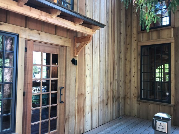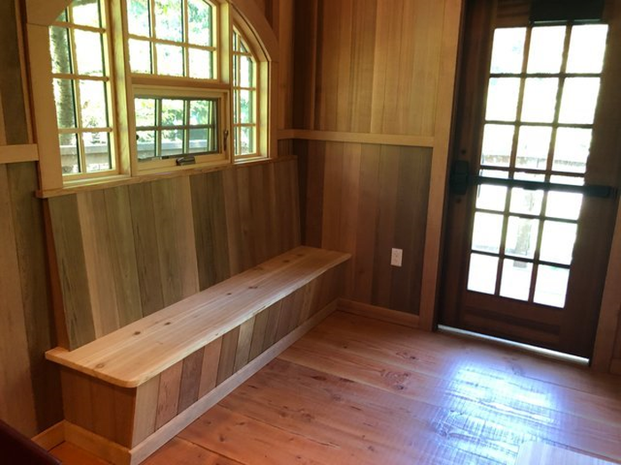 Bên trong nhà có nội thất đơn giản và đen vàng, ngôi nhà có hình chữ L nên không phù hợp để tổ chức cuộc họp, có lẽ đây là địa điểm thích hợp nhất cho nhân viên Microsoft nghỉ ngơi thư giãn. Ngoài ra còn có một khu vực có ghế dài cùng ổ điện. Toàn bộ ba ngôi nhà toát lên mùi gỗ tuyết tùng, một loạt gỗ có mùi thơm đặc trưng và được dùng trong bảo quản xì-gà cao cấp.