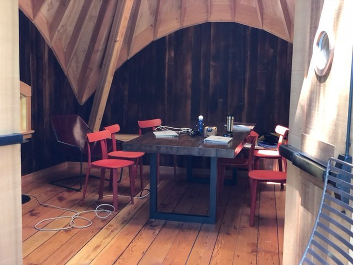 Tuy nhiên điểm thu hút nhất vẫn là phía trong ngôi nhà. Ngôi nhà to nhất này thường được các nhân viên “đặt phòng” trước để thực hiện các cuộc gặp gỡ riêng. Phía bên trong nội thất cũng được làm toàn bằng gỗ và có Wi-Fi, ổ điện đầy đủ.