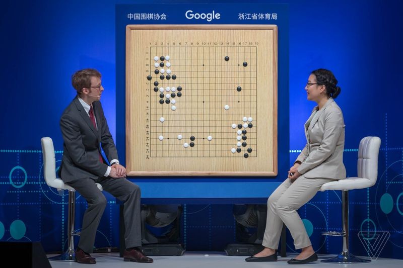 Andrew Jackson và Lee Ha-jin bình luận về ván đấu đầu tiên giữa AlphaGo và Ke Jie (ảnh: TheVerge)