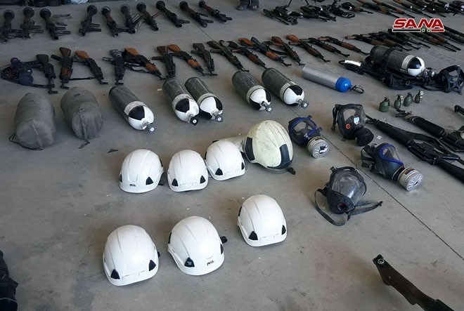 Trong các căn cứ của Mũ bảo hiểm trắng - White Helmets, quân đội Syria phát hiện một số lượng lớn thực phẩm và vật phẩm y tế có nguồn gốc từ Ả rập Xê út và Israel, cho thấy sự can thiệp trực tiếp của các quốc gia này vào nội bộ Syria thông qua cái gọi là các tổ chức Mũ bảo hiểm trắng. Sẽ không có gì ngạc nhiên khi binh sĩ Syria tìm thấy vũ khí trang bị và lương thực thực phẩm, vật dụng Y tế trong các lực lượng Hồi giáo cực đoan thánh chiến Hay’at Tahrir Al-Sham (HTS, Al-Qaeda Syria), Quân đội Syria tự do (FSA) và IS.