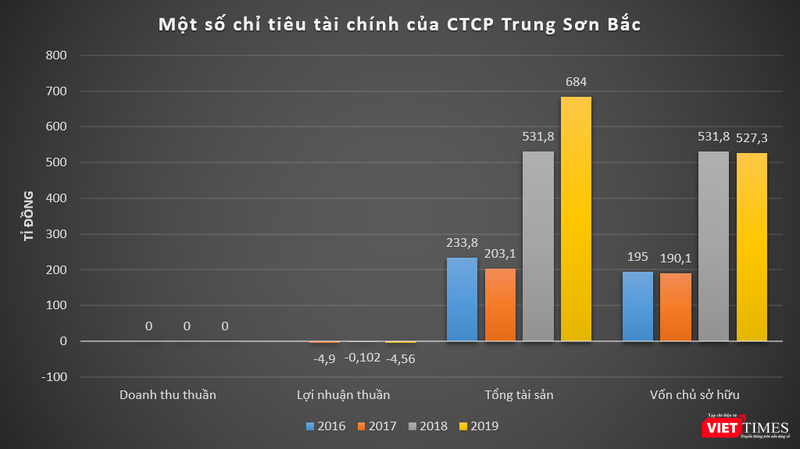 Vài năm gần đây, Trung Bắc Sơn không ghi nhận doanh thu và liên tiếp báo lỗ. Năm 2017, 2018 và 2019, công ty này lần lượt báo lỗ thuần ở mức 4,9 tỉ đồng, 102 triệu đồng và 4,56 tỉ đồng.