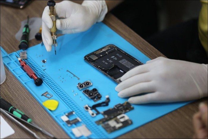 Kỹ thuật viên mở máy cho biết chiếc máy khá phức tạp, tích hợp nhiều công nghệ mới và có thêm những cải tiến so với người tiền nhiệm iPhone Xs Max.
