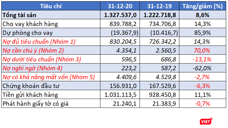 Trong năm 2020, chi phí dự phòng rủi ro tín dụng của nhà băng này ở mức 9.916,7 tỉ đồng, tăng 46% so với năm 2019.