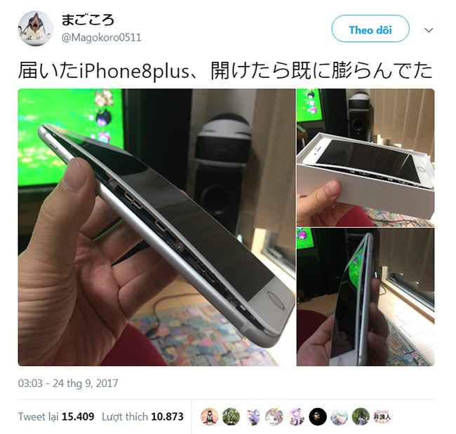 Ông Liu đã trả hàng lại cho bên bán và được đổi một chiếc điện thoại mới khác mà không mất phí. Vài người dùng iPhone 8 Plus khác cũng đã gặp tình trạng tương tự với chiếc điện thoại nguyên seal máy. Một người khác nói rằng anh ta đang sạc điện thoại bằng sạc chính hãng thì pin phồng lên.