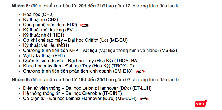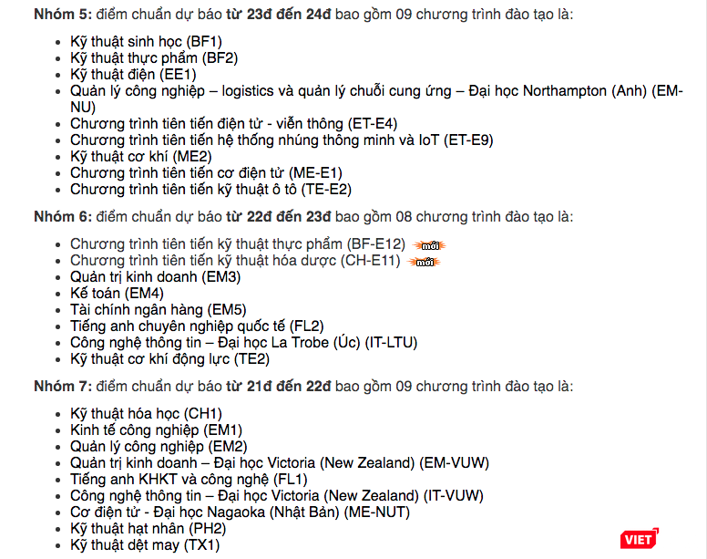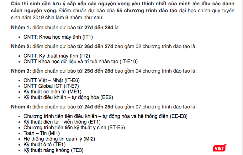 Phòng Tuyển sinh Trường ĐH Bách khoa Hà Nội đã dự báo cho thí sinh mức điểm chuẩn vào các ngành/chương trình đào tạo của Trường để các thí sinh có sự lựa chọn ngành phù hợp với khả năng và sở thích của bản thân.