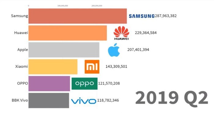 Năm 2015, bảng xếp hạng các nhà sản xuất điện thoại lớn nhất thế giới lần lượt là Samsung, Apple, Huawei, Oppo, Xiaomi và Vivo. Thời điểm hiện tại tính đến quý 2/2019, vị trí của Samsung vẫn không hề thay đổi, hãng đã xuất xưởng tổng cộng hơn 200 triệu thiết bị từ khi ra đời cách đây hơn 10 năm.