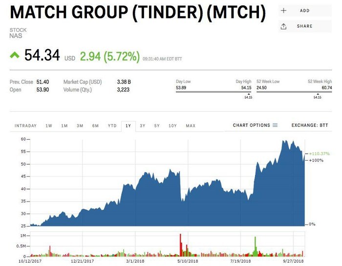 Đặc biệt vào đầu ngày thứ 6 vừa qua sau khi kết quả dự đoán của Nomura được công bố, cổ phiếu của Tinder đã tăng thêm 5% và tăng thêm 66% trong năm nay.