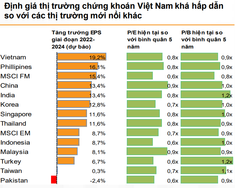 Về triển vọng thị trường chứng khoán, VNDirect cho hay, chỉ số VN-Index đang giao dịch ở mức P/E là 13,5 lần, giảm 22% so với mức đỉnh trong năm nay và giảm 17% so với mức P/E trung bình 5 năm.