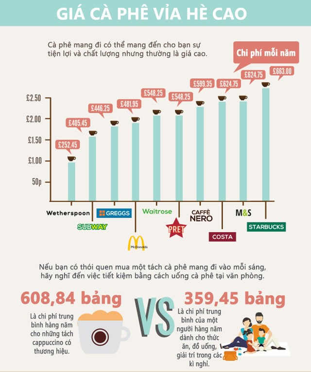 Trời lạnh, hương cà phê thơm lừng như đánh thức mọi giác quan của bạn. Tuy nhiên thói quen này khá xa xỉ. Infographic sau đây sẽ tiết lộ cho bạn chi phí mà thói quen này "ngốn" của bạn.