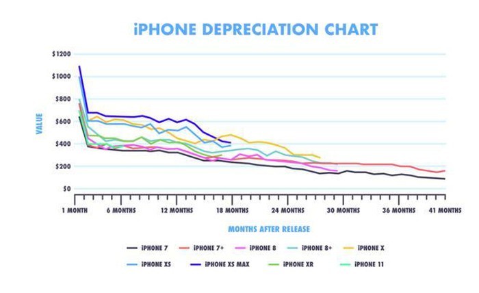 Thông thường, điện thoại thông minh sẽ mất giá 36% trong 12 tháng. Các mẫu iPhone thường mất 108 USD giá trị mỗi năm, trong khi điện thoại Galaxy của Samsung chỉ mất 66 USD.