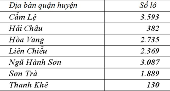 Số lô đất bố trí tái định cư chưa có quyết định sử dụng đất phân bổ theo quận huyện Đà Nẵng.