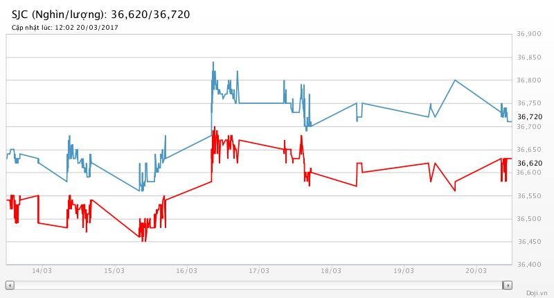 Trong khi, tại các đại lý của Doji, giá vàng miếng SJC chỉ được tập đoàn này điều chỉnh tăng 60 nghìn đồng chiều mua nhưng lại giảm 80 nghìn đồng chiều bán về yết ở 36,62 – 36,72 triệu đồng/lượng (MV-BR) đối với giao dịch lẻ; và đắt hơn 10 nghìn đồng chiều mua, đồng thời rẻ hơn 10 nghìn đồng chiều bán đối với giao dịch buôn ở thị trường Hà Nội.