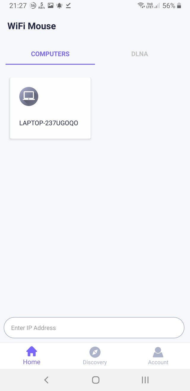Quay trở lại giao diện chính của ứng dụng Wifi Mouse trên thiết bị di động, nếu smartphone và máy tính đã cùng kết nối vào một mạng Wifi, trên giao diện chính của ứng dụng Wifi Mouse sẽ liệt kê máy tính của bạn, người dùng chỉ việc nhấn chọn vào tên máy tính xuất hiện trên ứng dụng.