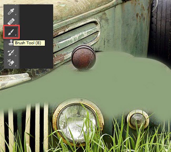 3. Chọn Brush Tool từ bảng Tools. Chọn cỡ bút và độ sắc nét. Chọn màu xanh giống với màu cánh cửa xe trên bảng màu.