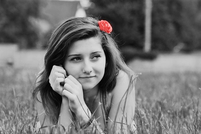Bạn cũng có thể sử dụng thủ thuật trên để thêm màu cho ảnh đen trắng như bức ảnh dưới đây. Đầu tiên cũng tạo ra một Layer mới. Sau đó tô màu đỏ cho bông hoa. Chỉnh blend mode sang Color là xong.