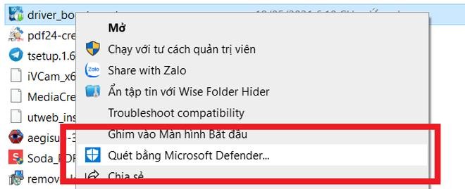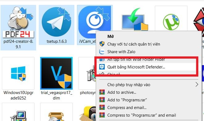 Với phiên bản Windows 10, Microsoft đã tích hợp sẵn phần mềm bảo mật Microsoft Defender để bảo vệ máy tính, người dùng không cần phải cài đặt thêm các phần mềm bảo mật khác. Nhưng nhìn chung, tất cả các phần mềm bảo mật (antivirus, internet security, total security…) sau khi cài đặt vào máy tính đều được tích hợp chức năng quét và kiểm tra file vào menu chuột phải trên Windows, giúp người dùng có thể quét để kiểm tra "độ sạch" của file, thư mục một cách nhanh chóng.
