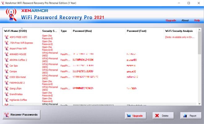 Dựa vào thông tin do XenArmor WiFi Password Recovery Pro cung cấp, bạn có thể dễ dàng tìm lại mật khẩu của các mạng WiFi mà mình đã từng kết nối trên máy tính để có thể chia sẻ mạng Wi-Fi này với những người dùng khác.