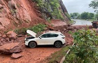 Vụ sạt lở cũng khiến 1 xe khách giường nằm, 2 xe ô tô con, 3 xe tải, 1 số xe máy của người dân sống gần khu vực đó và người dân khi di chuyển qua đường bị hư hại.
