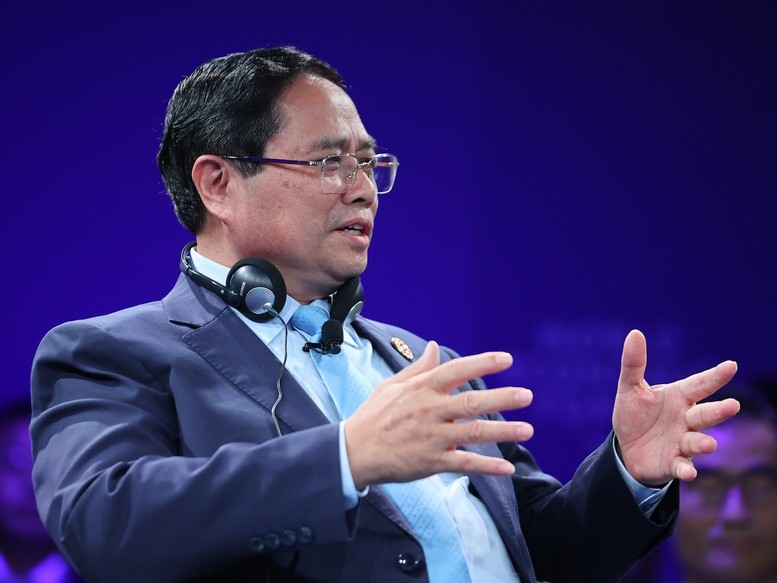 Thủ tướng chia sẻ, trong bối cảnh suy giảm tăng trưởng trên thế giới rất rõ, thì Việt Nam vẫn đặt mục tiêu tăng trưởng từ 8% trong năm 2025 và hai con số trong những năm tới, để có thể đạt mục tiêu tới năm 2045 trở thành nước phát triển, thu nhập cao.
