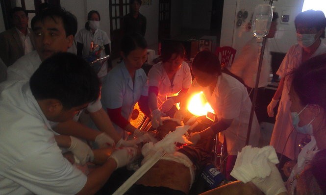 Gần 10 giờ sau vụ tai nạn, anh Phan Anh Dũng (SN 1992, quê huyện Bố Trạch, tỉnh Quảng Bình), hiện điều trị tại Khoa Chấn thương Bệnh viện Đa khoa tỉnh Hà Tĩnh, kinh hoàng nhớ lại: “Tối 25-3, khoảng 20 giờ, tôi và anh em đang làm việc phía trên thì thấy hệ thống giàn giáo dịch chuyển rồi đổ sập. Đống sắt thép đè lên nhiều người, máu chảy, tiếng la hét khắp nơi... Bị thương nặng ở chân và đầu nhưng tôi cố hết sức bò ra khỏi đống đổ nát kêu cứu. May thay, một số công nhân ở gần đó phát hiện, lao vào cứu tôi ra khỏi đống sắt thép”.