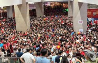 Khách đông kỷ lục, tàu Cát Linh - Hà Đông "chật cứng" người từ sân ga, đến nhà chờ