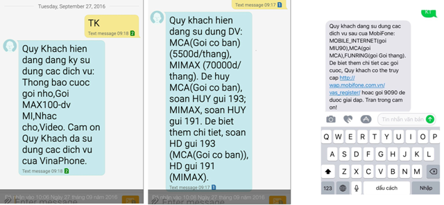 Mobifone còn khá khẩm hơn Vinaphone một chút, khi mạng này cũng có liệt kê cho khách hàng biết đang dùng những gói dịch vụ giá trị gia tăng gì và có thêm hướng dẫn khách hàng gọi điện thoại đến 9090 hoặc vào đường link đính kèm để biết thêm thông tin chi tiết về gói cước đang sử dụng. Tuy nhiên, Mobifone cũng “giấu” thông tin về giá trị gói cước cũng như cách hủy dịch vụ như Vinaphone.