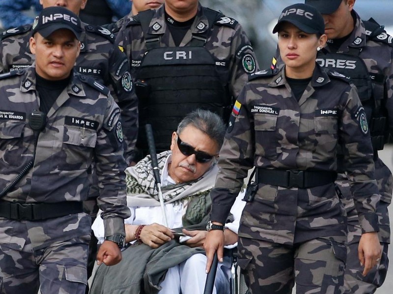 Tuy nhiên, do bất mãn với thái độ của chính phủ trong việc thực thi thỏa thuận hòa bình, Ivan Marquez từ lâu đã vào ẩn náu trong rừng nhiệt đới; còn Seuxis Hernandez thì bị cáo buộc tham gia hoạt động buôn lậu ma túy sau hiệp định hòa bình, bị cảnh sát Colombia bắt và giam giữ đến tháng 5/2019 mới được phóng thích, nhưng từ chối thực hiện nhiệm vụ của mình tại Quốc hội rồi biến mất vào ngày 30/6. Sau đó rộ lên tin đồn ông đã trở lại rừng và tái hợp cùng Ivan Marquez. Ảnh dưới: ngày 17/5/2019, các lính gác áp giải cựu lãnh đạo FARC Seuxis Hernandez tại nhà tù ở Bogota, Colombia.