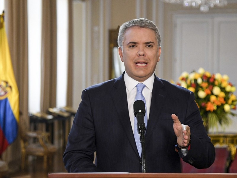 Ngay buổi chiều cùng ngày 29/8, Tổng thống Colombia Ivan Duque đã có bài phát biểu trên truyền hình, tuyên bố trao thưởng 3 tỷ peso Colombia (1 peso Colombia có giá khoảng 0,00029 đô la Mỹ) cho ai bắt giữ được các cựu thành viên FARC như Ivan Marquez, người đã tuyên bố tái tổ chức lực lượng vũ trang. Ông Duque nói Colombia không chấp nhận bất kỳ hình thức đe dọa nào. Ông cũng cáo buộc nhóm Marquez được sự ủng hộ của “chính phủ nước ngoài”, nhân danh tổ chức lại lực lượng vũ trang, thực tế là “tham gia vào các hoạt động tội phạm”. Ảnh dưới: Tổng thống Ivan Duque tuyên bố trao thưởng 3 tỷ peso cho việc bắt giữ ông Ivan Marquez.