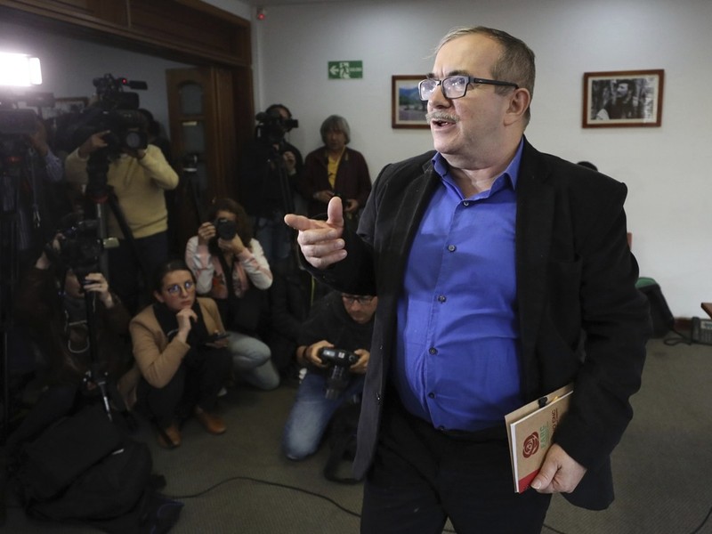 Ông Miguel Sevallos, Cao ủy hòa bình của chính phủ Colombia, nói, hành động của Marquez và những người theo ông ta cho thấy họ đã xé bỏ thỏa thuận hòa bình và chính phủ Colombia “không hề cảm thấy bất ngờ”. Cùng ngày, ông Rodrigo Londono một cựu lãnh đạo của FARC, người đã thành lập và trở thành Chủ tịch Đảng Quyền lực Cách mạng đại chúng sau hiệp định hòa bình, đã nói rằng bất chấp những khó khăn trong tiến trình hòa bình, sau khi giải giới tuyệt đại đa số các thành viên cũ của FARC đã vẫn nỗ lực cho hòa bình. Ảnh dưới: ông Rodrigo Londono được phỏng vấn ở Bogota, Colombia ngày 15/8.