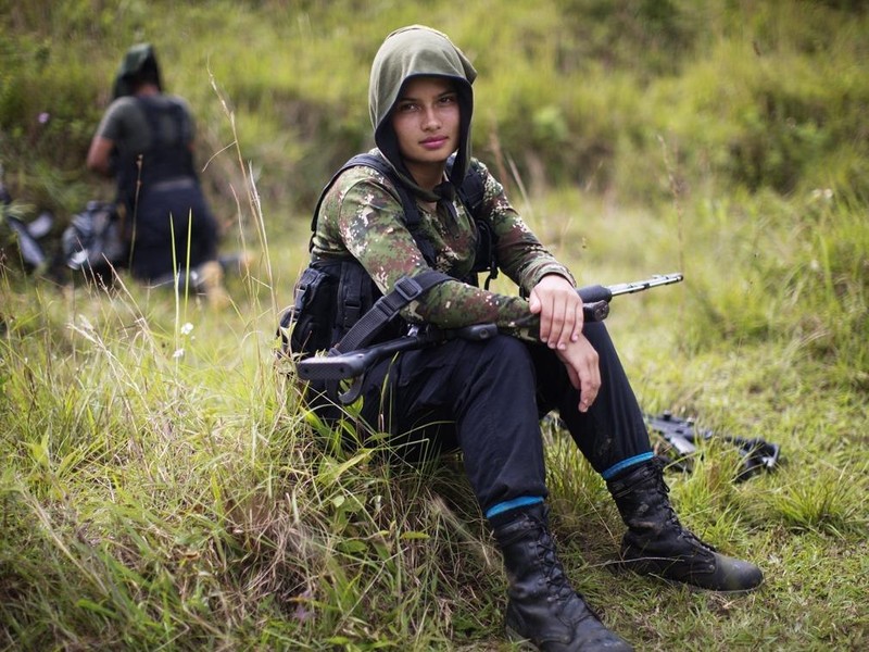 Sau khi ký hiệp định hòa bình với chính phủ vào năm 2016, FARC, đã giải giáp vũ trang và thành lập đảng chính trị Đảng Quyền lực Cách mạng đại chúng; cả ông Ivan Marquez và Seuxis Hernandez đều tham gia ban lãnh đạo đảng và có được ghế trong quốc hội. Ảnh dưới: ngày 6/1/2016, nữ chiến binh FARC 20 tuổi Juliana nghỉ ngơi trong chuyến đi bộ ở dãy Andes.